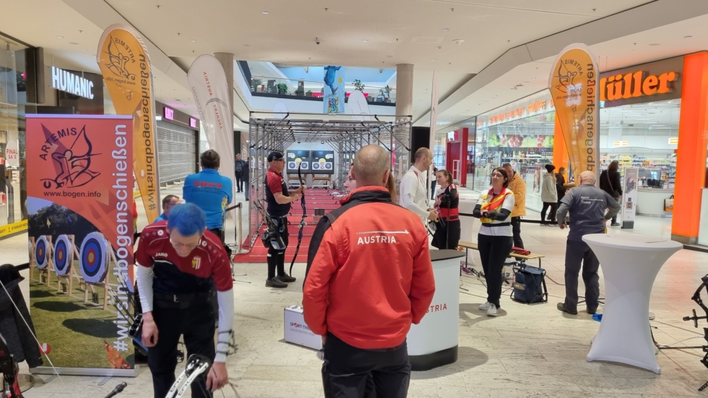 - 21 Helferinnen und Helfer sowie Coaches aus Wien (Auf- und Abbau, Publikumsschießen, Beantwortung von Fragen, Agents, Pfeilzieher, Scorer etc.)