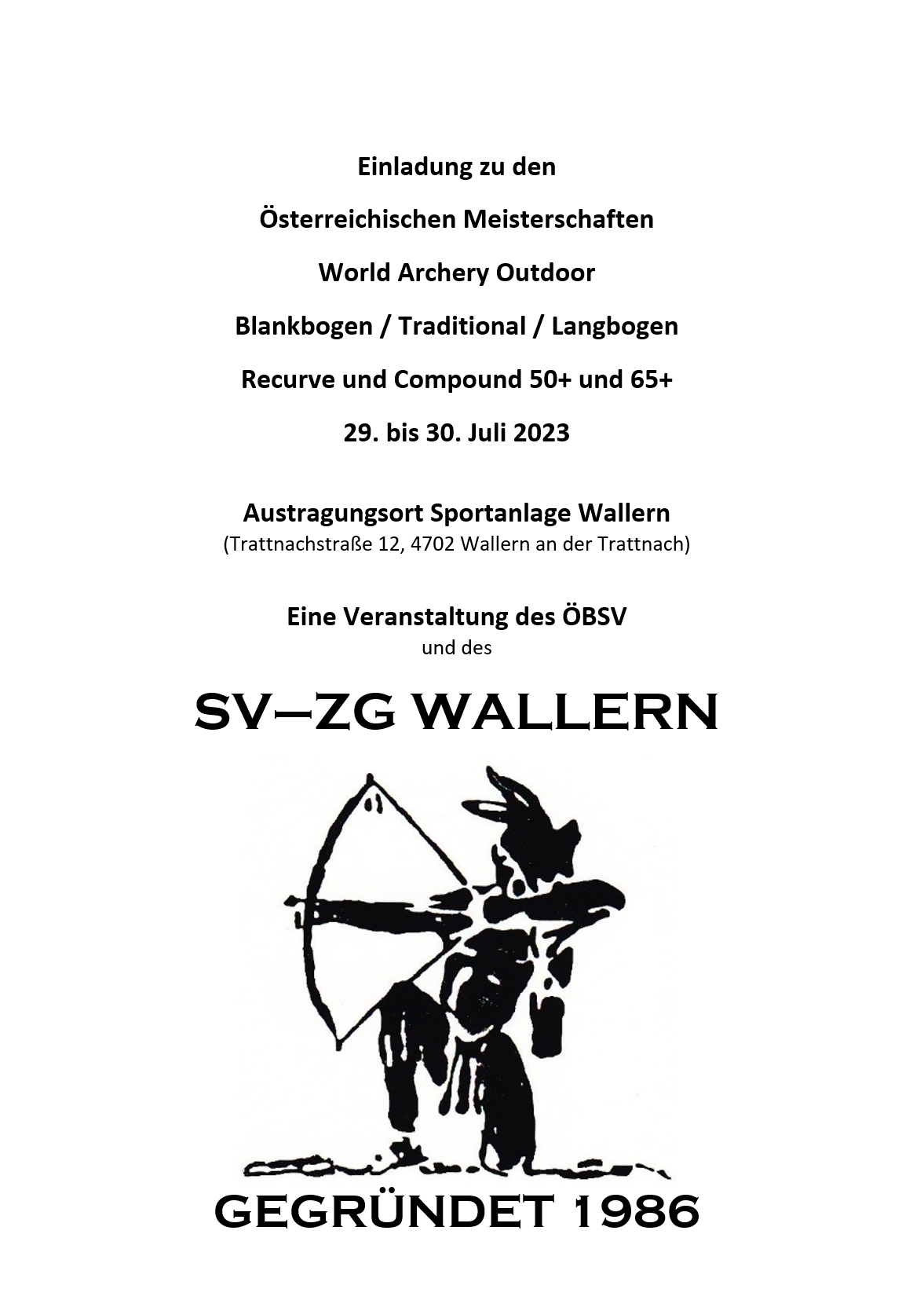 Training "Jugend_3" - Anfänger Dauer: April - September ( Samstag von 10:30-12:30) Outdoorplatz Stockerau Beginn: 01.04.2023 Trainer: Ingrid & Ernst Umfang: Spielerisch werden wir dir die Grundtechnik des Bogenschießens vermitteln, aber auch Reaktions – und Konzentrationsaufgaben sowie Teamspiele stehen auf unserem Trainingsplan. Auch das Schießen auf Luftballons und Fun – Auflagen darf natürlich nicht fehlen. […]